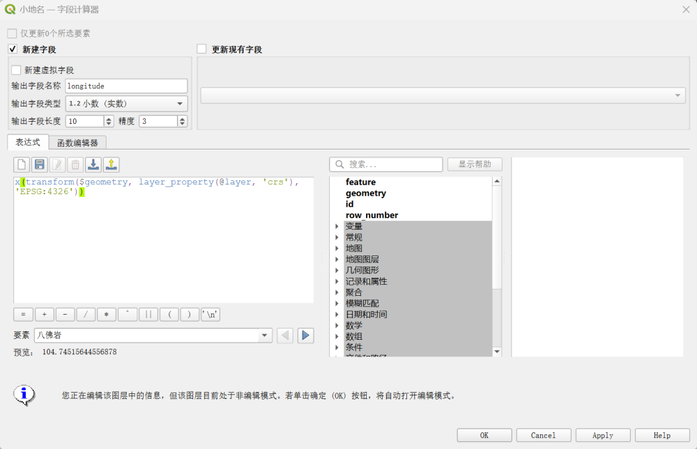 实际操作的方法主要有两种,第一是图层重投影,第二是矢量要素计算器。图层重投影在之前已经讲过,点击这里直达。