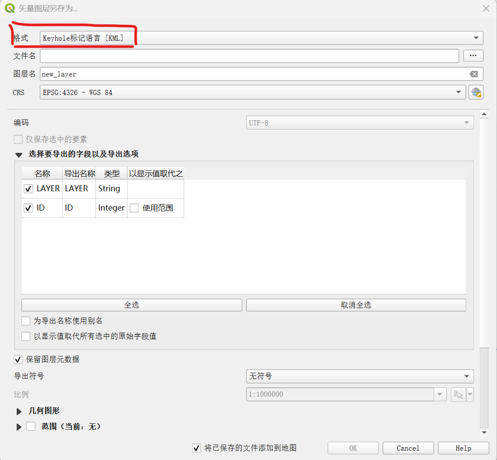 工具人LuYY 使用免费开源QGIS软件,轻松实现各类矢量数据格式的互转。当然包括KML和ShapeFile格式。 实现步骤如下: 1、将矢量文件拖入QGIS中。 2、右键矢量层,依次点击【导出】->矢量图层另存为】。在格式栏中,选择需要导出的文件类型。如:KML、ESRI形状文件(即:ShapeFile)、GeoJSON、CSV等。 3、在文件名栏中,填入输出文件路径。 4、点击【OK】 更多QGIS使用问题,欢迎留言或联系我们。转载须注明出处。