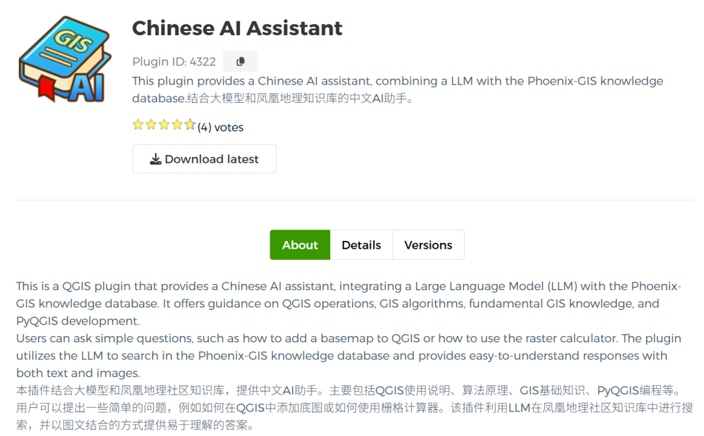 我们将凤凰地理社区知识库与大模型整合后,推出了QGIS中文AI助手(Chinese AI Assistant)。目前已正式上线QGIS官方插件仓库。欢迎大家通过QGIS插件管理器或访问官网下载。