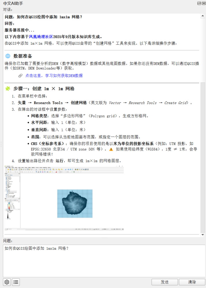 QGIS中文AI助手利用大模型在社区知识库中进行搜索,并以图文结合的方式提供易于理解的回答。